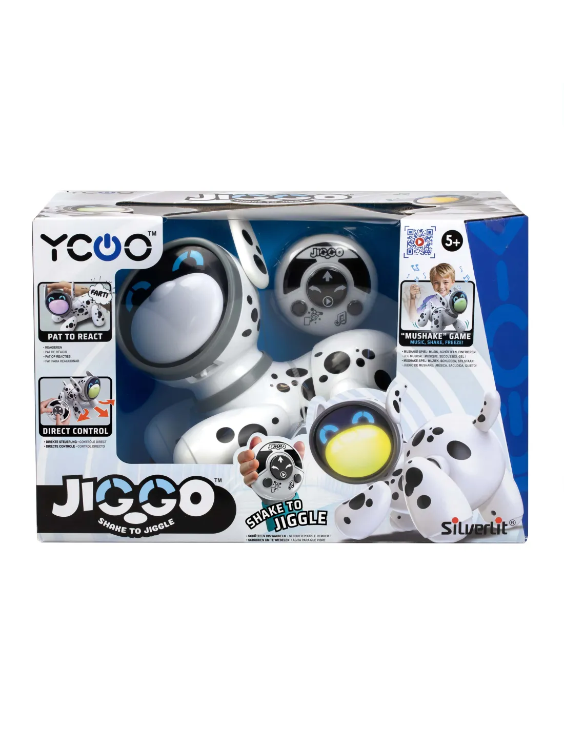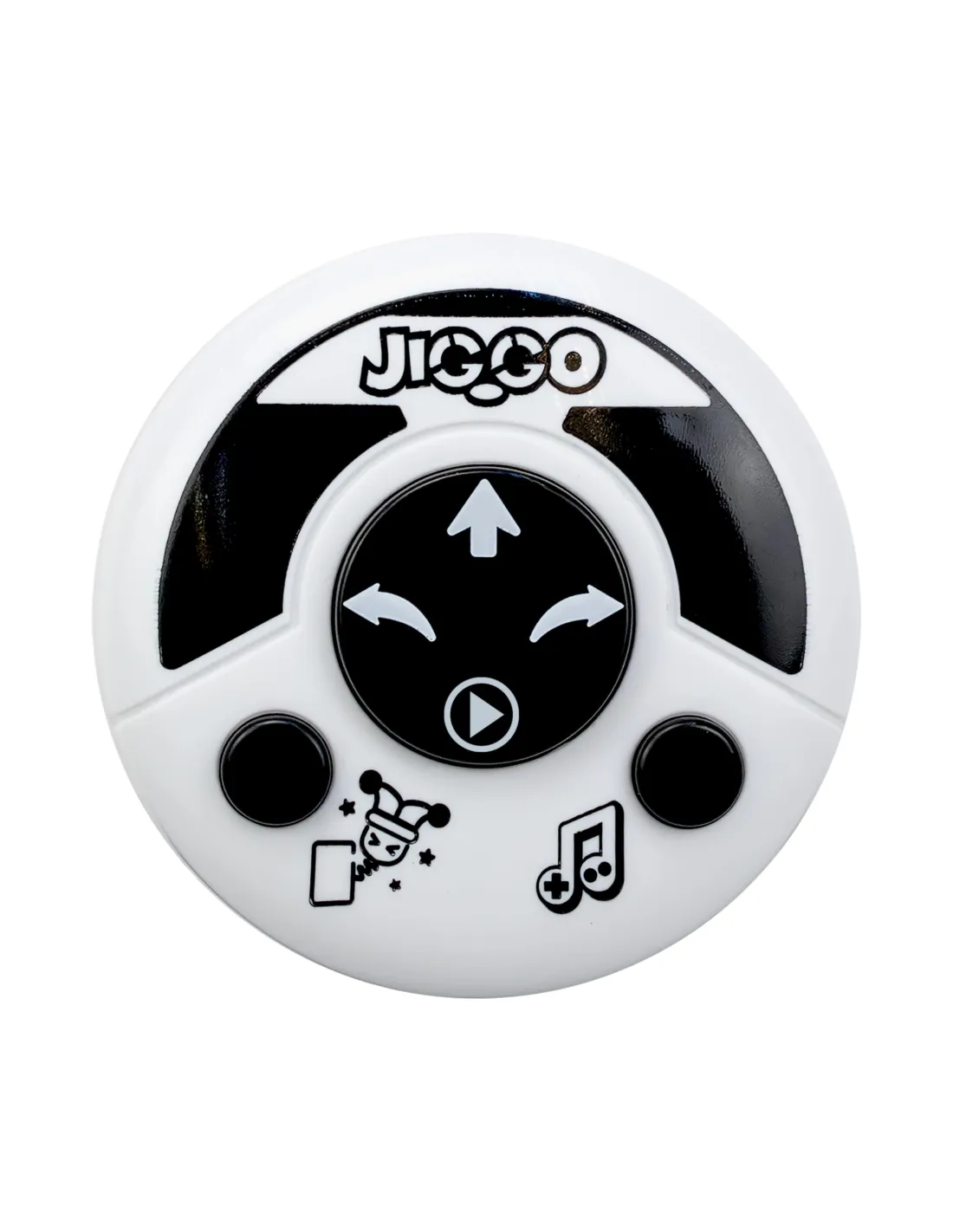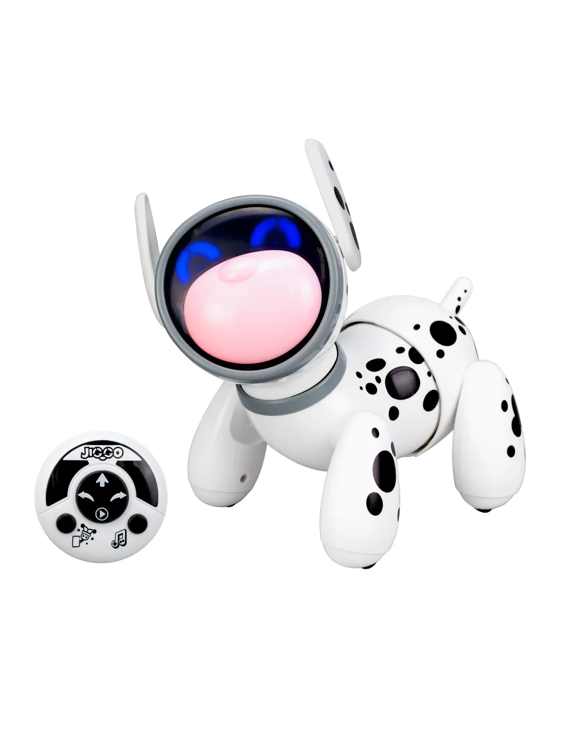Med en handkontroll som är specialdesignad för små händer styr du enkelt Jiggo framåt eller åt sidan. Skaka på kontrollen och se hur Jiggo börjar vicka glatt på höfterna! Tack vare inbyggda sensorer reagerar Jiggo när du klappar honom på huvudet, med roliga ljud eller rörelser.